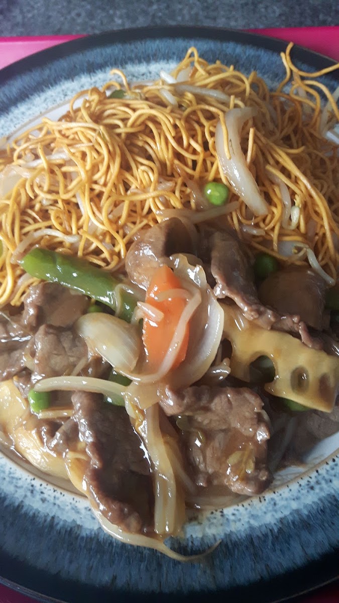 Clean and smart. Friendly helpful staff. Food lovely. Picture of Beef and onion with vegetables and fried noodles and the beef was tender altogether tasty.